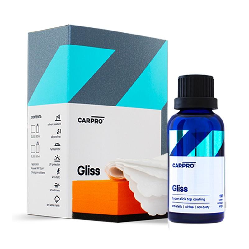 CarPro Gliss is an ultra smooth hydrophobic coating that is hyper-glossy and easy to apply ceramic nano coating that excels as a top-coat for all CQuartz coatings. CarPro Gliss also increases resistance to static buildup, dust retention and many types of mineral and water stains!