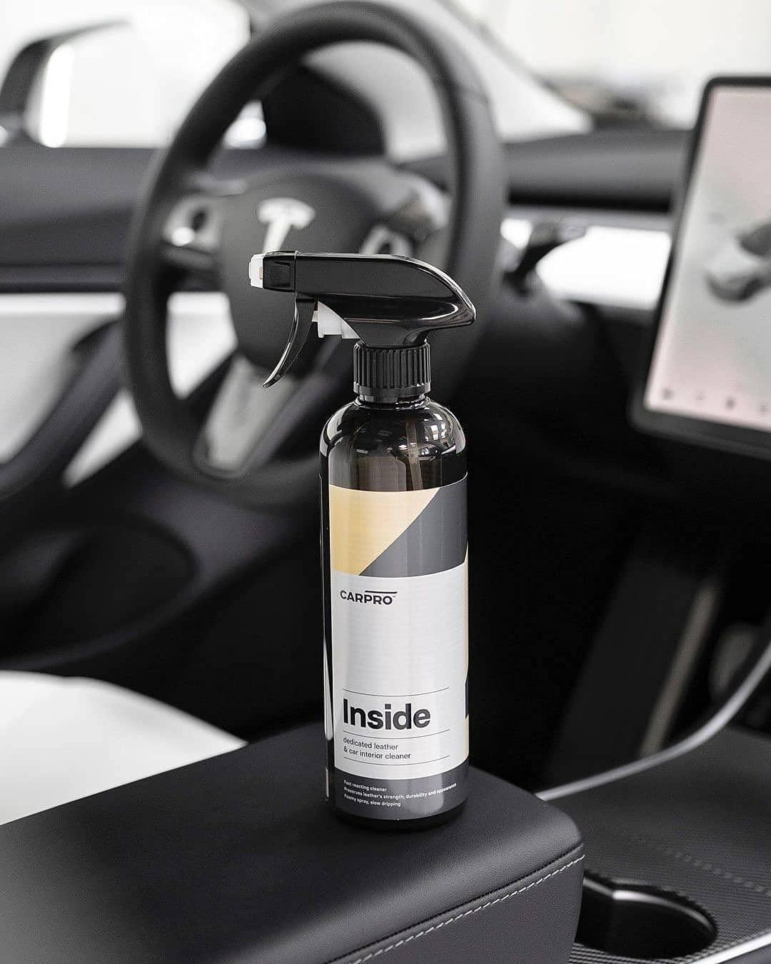 CARPRO Inside is an incredible cleaning solution for vehicle interiors of all shapes and sizes. Inside is specially formulated to clean vinyl, plastic, finished leather and a variety of other interior surfaces. Utilizing a high foaming mix of proprietary surfactants and gentle detergents, Inside is able to easily remove dirt, sweat, oils, and all manner of soling from interior surfaces.