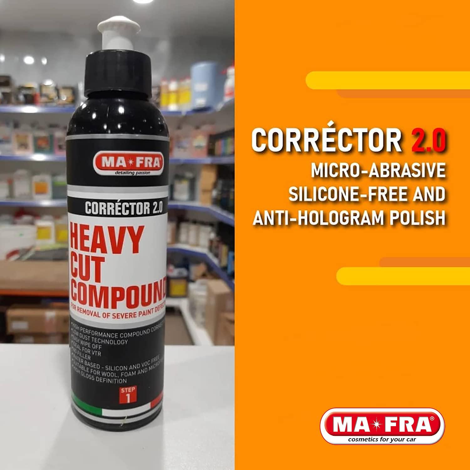 CORRÉCTOR 2.0 is a very versatile water-based polish compound without silicones and fillers which, thanks to its Micro Abrasive Technology (MAT) formula, guarantees a decisive cut and an excellent finish already in the cutting phase. It is ideal for use with random orbital or rotary press.