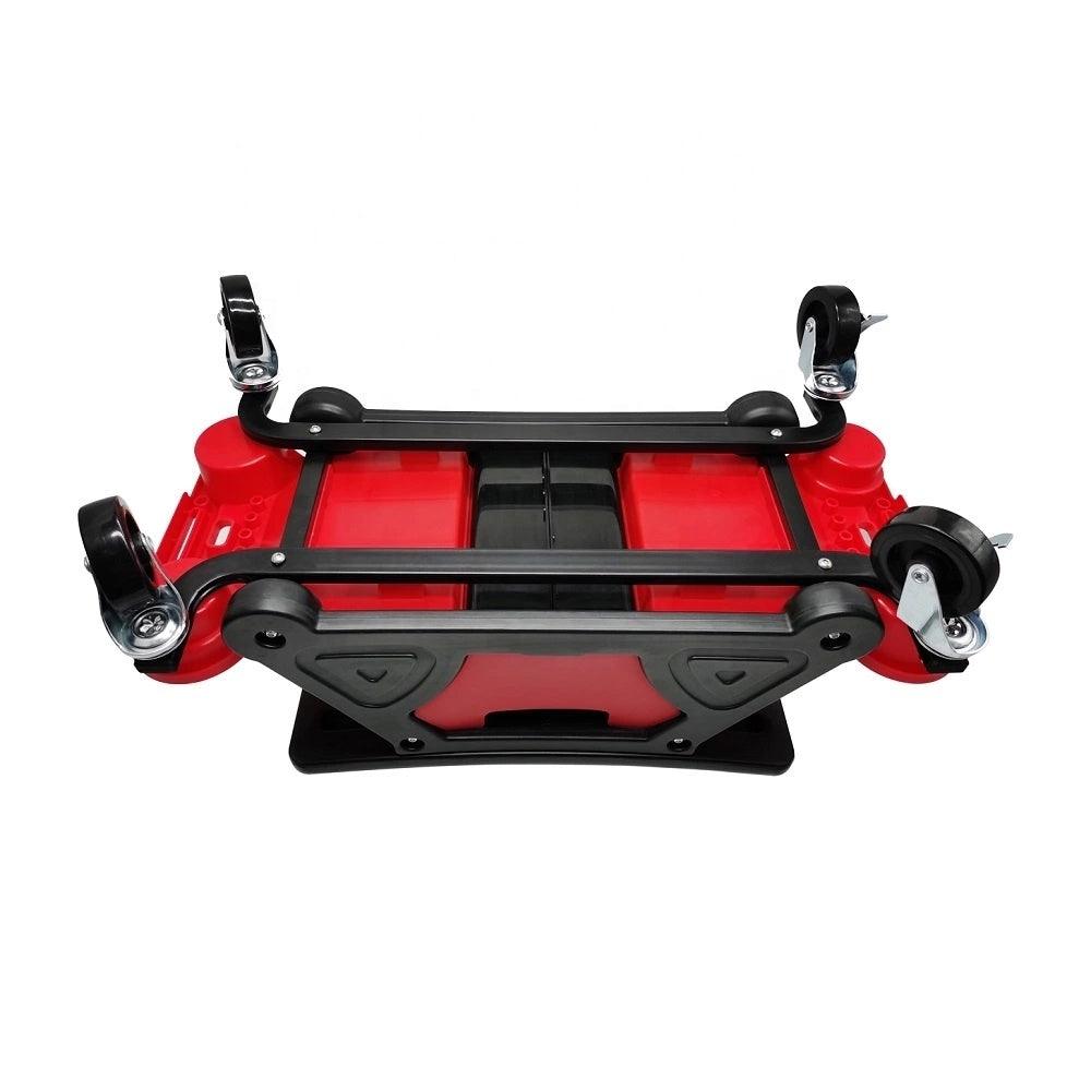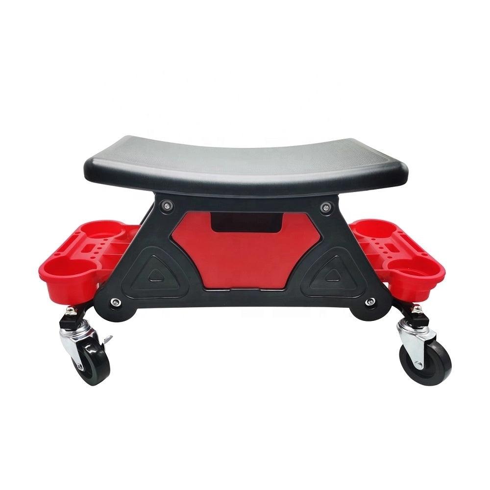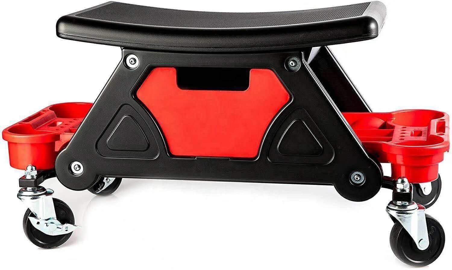 This item offers a storage tray with space for towels, phones, products, and other car care items. Built with heavy-duty 360° swivel casters and locks, it can hold up to 4 sprayer bottles or products for easy access. Perfect for DIY tasks at home, a workshop, or garage, its sturdy aluminum frame holds up to 150kgs of evenly-distributed weight. Ergonomically-designed, it provides a non-slip seating surface and storage areas on both sides, and a drawer in the middle.