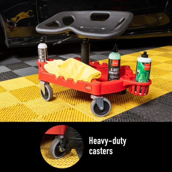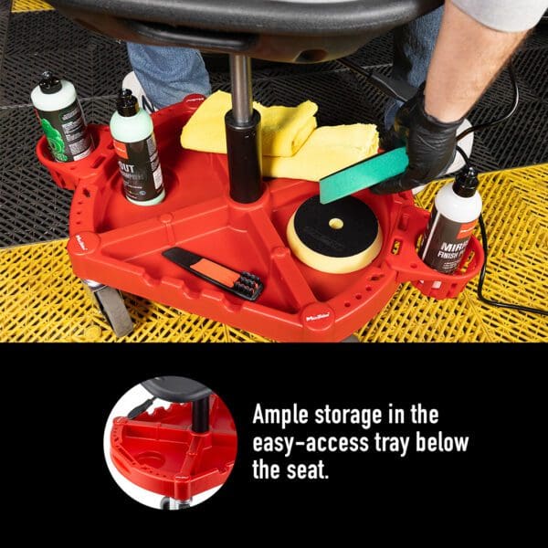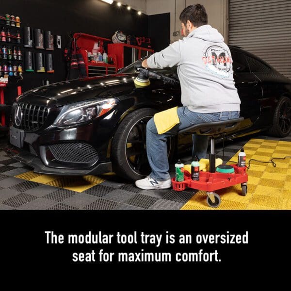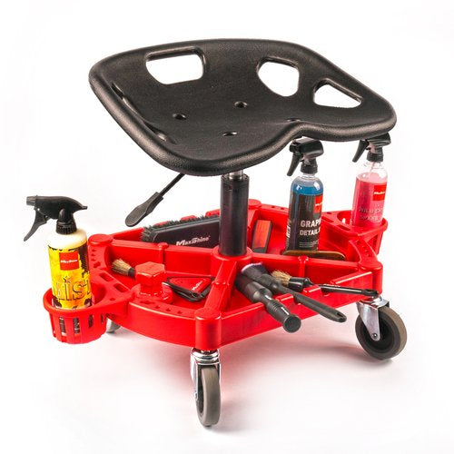 Get ready to simplify your car detailing routine with Adam's Detailing Stool. This premium, height-adjustable roller chair includes a storage bay for all your cleaning supplies. Move around your garage or driveway with ease thanks to the heavy-duty rolling wheels. Plus, with 2 bottle holders and an oversized storage tray, you can easily organize all your car wash essentials. Proudly made in the USA, this multi-use detailing creeper is designed to make your life easier. Satisfaction guaranteed or your money back.
